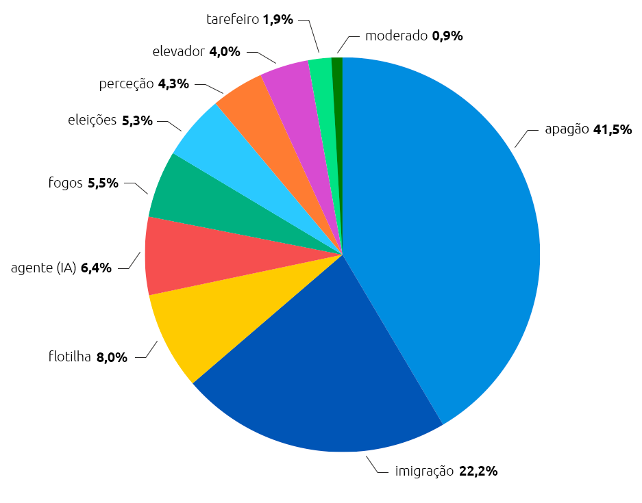 Com 41,5% dos votos, o termo destacou-se como o mais representativo do ano, refletindo o impacto profundo que a falha generalizada no fornecimento elétrico teve na sociedade portuguesa, deixando milhões sem acesso a transportes, comunicações e serviços essenciais.